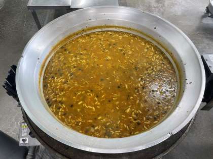 今日の献立は、カレースープスパゲッティ・キャベツのピクルス・おさつチップス・コッペパン・アプリコットジャム・牛乳です。