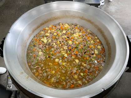 豚肉と野菜の煮ものは、豚肉やにんじん、むき枝豆、しいたけなどが入った彩りのよい煮もので、だしが効いていておいしかったです。