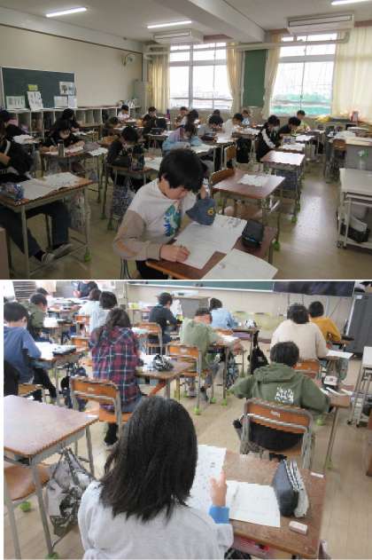 国語、算数、理科の調査と、わくわく問題(教科横断型問題に取り組みました。子どもたちは、いつものテストの時以上に集中して問題に向き合っていました。