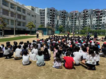 子ども達は避難訓練の前に火災の恐ろしさや、速やかに安全に避難する方法を学びました。実際の避難訓練では、おはしも(押さない・走らない・しゃべらない・戻らない)を徹底しながら、ハンカチを口に当て、速やかに避難する姿が見られました。また、火災を想定した避難訓練のため、協力して窓を閉める様子も見られ、多くの児童が真剣に取り組むことのできていた避難訓練だったと思います。