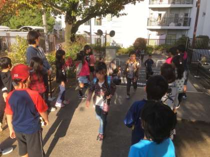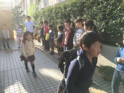 今日は2,4,6年生が門の前に立って、朝のあいさつをしました。