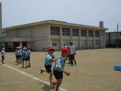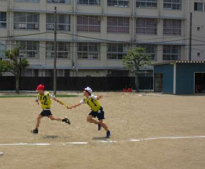 リレー競走をする前に、チームごとにリレー競技で大切な「バトンパス」を練習していました。お互いに声をかけ合って技術を高めていく姿勢は、さすが6年生だなと感じます。