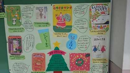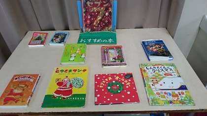 毎週、金曜日は、図書館補助員が来ます。補助員さんが、図書室の掲示物を作りました。来月に迫ったクリスマスに関連する本の紹介です。