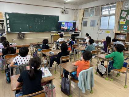 本日は4年1組の教室から、読み聞かせ隊のみなさんが絵本を読み、各教室に放送しました。