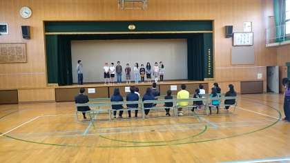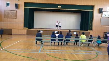 そのリハーサルで、6年生の児童が堂々と漫才をしました。