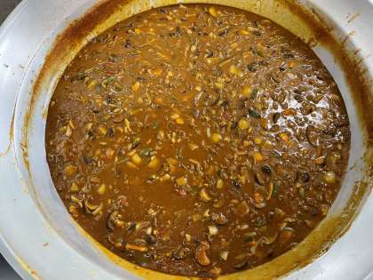 夏野菜のカレーライスは、旬のかぼちゃやなす、ピーマンなどの野菜がごろごろ入っていて、具だくさんでおいしかったです。