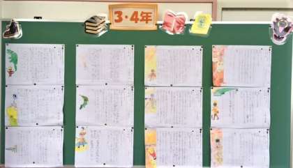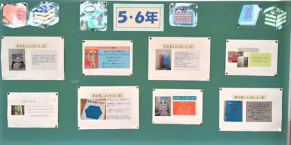 図書室前に、新しく設置され学年の図書掲示板ですが、1・2年、3・4年、5・6年の、3つのの掲示板に、それぞれの学年の図書や読書に関する掲示物が貼られていました。それぞれの掲示板ごとに2学年交代で掲示の充実を図っていきます。