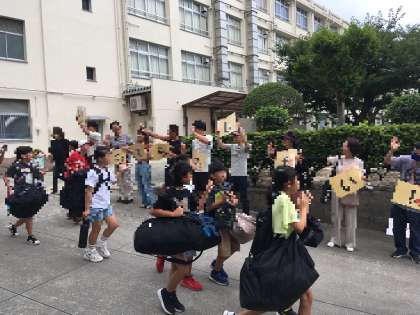 5年生が、1泊2日の行程で、元気に林間学習へ出発しました。
