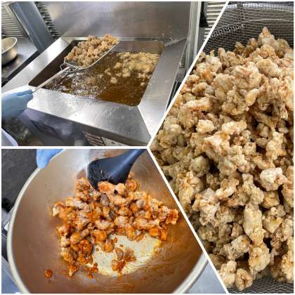 ヤンニョムチキンは、油で揚げた鶏肉に「ヤンニョム」という甘辛いたれを絡めて作ります。「ヤンニョム」とは、コチジャンやしょうゆ、ごま油などを混ぜ合わせた調味料のことです。