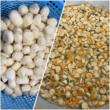 一口がんもとさといものみそ煮は、生のさといもを一つ一つ丁寧に皮をむいて使用していて、さといもがほくほくでおいしかったです。