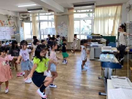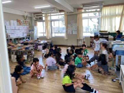 本日、1年生は、エアコンの効いた教室で片足バランスなどの体を楽しく動かす活動をしていました。無理なく、楽しく、体を動かす工夫が教育現場にも求められています。