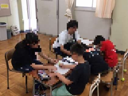 なかよしの教室では、教育実習中の実習生となかよし担当の先生がチームを組んで、ていねいに学習をすすめていました。