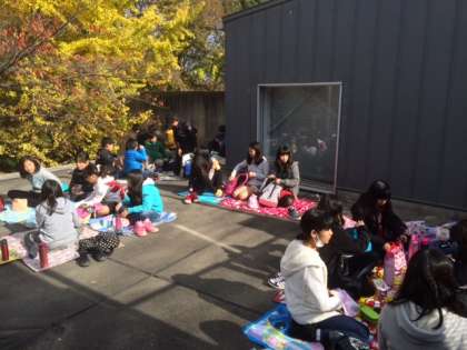 6年生は、今回の社会見学でのお弁当が小学校行事で食べる最後のお弁当です。少し寒かったのですが、社会見学のあと大阪城公園でお弁当を食べました。