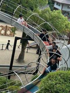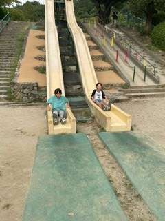 そして、すぐにお弁当を食べ終えると、楽しい遊具でクタクタになるまで遊んでいました。