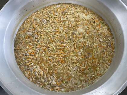 豚汁は、豚肉の他にうすあげやキャベツ、たまねぎ、にんじんなどの具材がたくさん入っていました。