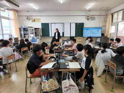 5時間目に5年2組で研究授業が行われました。国語科『和の文化を受けつぐ』の単元で、情報を重ね合わせて読むという学習をしました。教材文と和菓子職人のインタビュー記事の資料を重ね合わせて読み、「文化を受けつぐ」とはどういうことなのか・・・と、それぞれに考えたことをグループや全体の場で交流しました。子どもたちは、友だちの考えをしっかりと聞いたり、そこから共感したことや納得したことなどを伝え合ったりと、とてもよく頑張っていました。