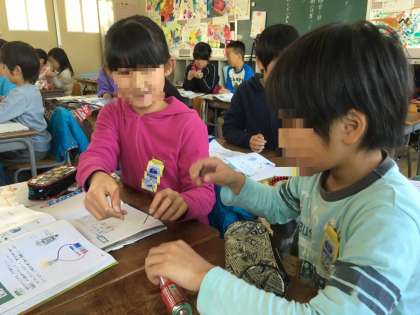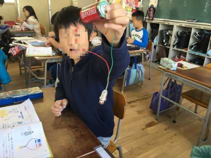 児童が自らつなげて、電球がつくところを見せてくれました。