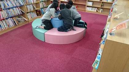 校長戦略予算で購入したもので、さっそく、児童が座って読書をしていました。
