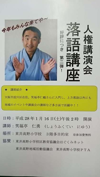 平成28年1月16日(土)、本校多目的室におきまして、人権講演会が行われます。