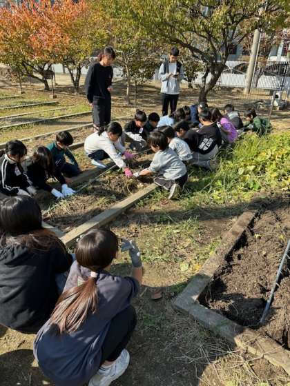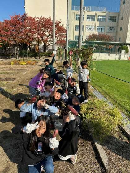 4時間目 2年生でおいもほりをしました。なかなかいろんなサイズのサツマイモがそれなりの数掘り出されました。みんな経験することができて、大人たちは正直ほっとした部分はあります。スーパーではなかなか出ない形や大きさのものが収穫でき、どうしてこうなるのか考えることもできました。今日からしばらくの間キュアリングのため芋を補完し、適切な時期に子どもたちと味を確かめようと思います。しっかり甘いといいのですが少なくとも色合いはしっかり金時色の芋でした。なにより子どもたちの楽しい笑顔が印象に残りました。