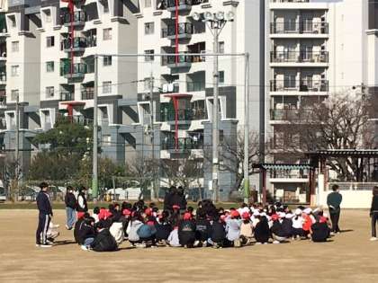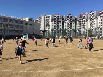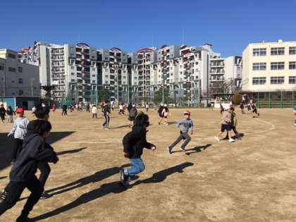 2日目の今日は、15分休憩の時間に、4・5・6年生の児童が運動場に出て「3色おにごっこ」をしました。ふだんはたて割りで低学年に優しくしている子も、隣接学年とのおにごっこでは、本気モードです(≧▽≦)
