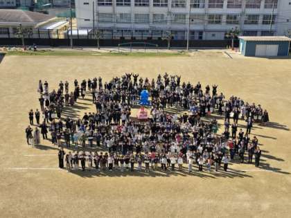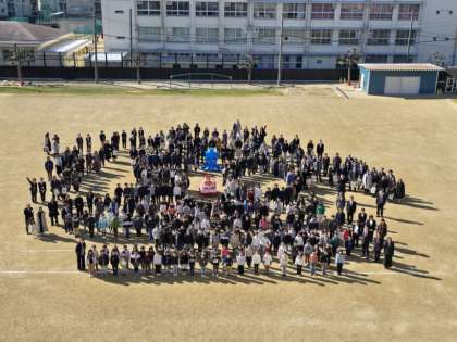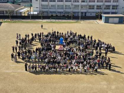 式典終了後は、全校児童・職員と、参加された来賓・保護者で記念写真を撮りました。天気も良く、とてもすてきな雰囲気で撮影することができ、学校と地域の一体感を感じることができました。