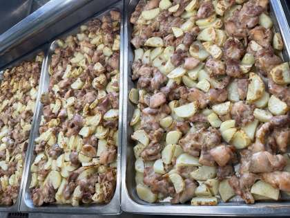 鶏肉とじゃがいものガーリック焼きは、じゃがいもに鶏肉のうま味が染みこんでいてとてもおいしかったです。