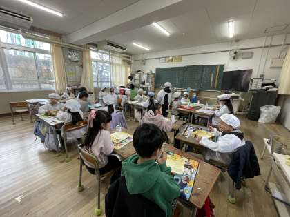 レバーはくせのある食べ物ですが、今日の給食では、しょうがやにんにく、セロリを使って食べやすくしています。