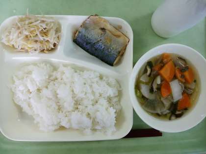 牛乳・米飯・さばのみそ煮・のっぺい汁・もやしのゆずの香和えです。
