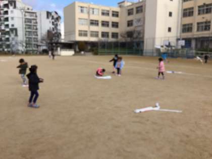 寒さが一段と厳しさを増す中、子どもたちは元気に走り回って自分たちの作った凧をあげていました。「子どもは風の子」とは、このことですね。