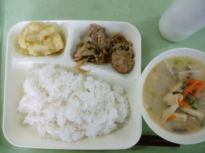 米飯・牛乳・かす汁・豚肉のごまだれ焼き・くりきんとんです。