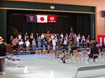 新2年生の児童が新入生に向けての「お祝いの言葉」の練習を一生懸命しました。