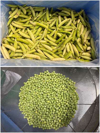日本各地で育てられ、一年中出回っていますが、たくさんとれておいしい時期は、春から夏の初めです。今日の「えんどうの卵とじ」は、給食室でさやから豆を取り出したえんどうを使っています。