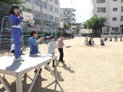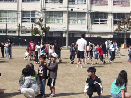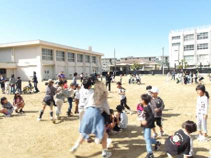 今日はたて割り班では、運動場で初のゲームです。「コトロコトロ」と言って、並んだ最後列の子を鬼が捕まえるという遊びです。集会委員は一生懸命説明をし、始まってからもみんなに声をかけていました。列を入れ替え、3ゲーム、盛り上がっている声がよく響いていました。