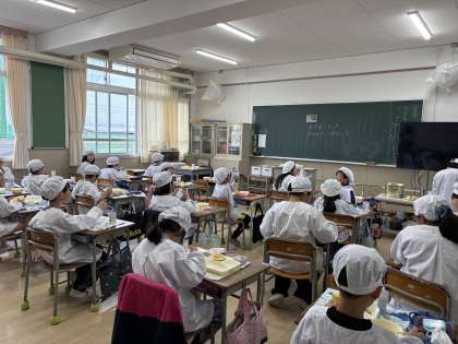 今日の献立は、鶏肉とコーンのシチュー、キャベツのひじきドレッシング、かわちばんかん、おさつパン、牛乳です。