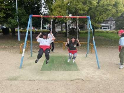 食べた後は、公園で鬼ごっこやすべり台、ブランコなどで遊びました。
