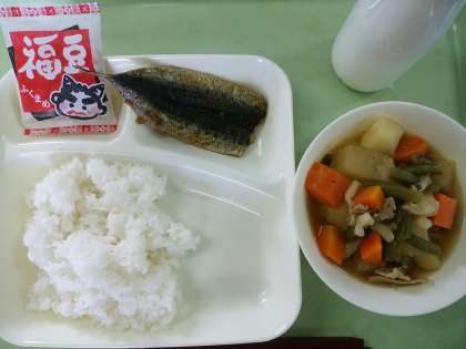 米飯・牛乳・いわしの生姜しょうゆかけ・含め煮・いり大豆です。