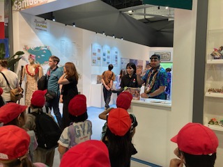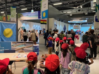 コモンズ館で世界の国々の紹介を見ながら、外国の方と国際交流です