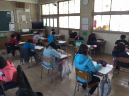 難しい問題だったと思いますが、みんな最後まで諦めずに取り組んでいました。中には「なんだったかなぁ?」と悩んでいた児童がふっと思い出して取り組んでいる姿が多々見受けられました。