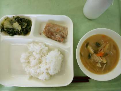 米飯・牛乳・鶏肉のゆず塩焼き・みそ汁・おおさかしろなの煮びたしです。