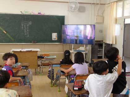 今日の児童集会は「何が通りましたかゲーム」テレビ画面を通り過ぎたのは何だったのかを当てるゲームです。運動場や講堂とは違い、ゲームをしているみんなの顔が見えない放送室から集会委員のみんなは一生懸命盛り上げようと工夫していました。