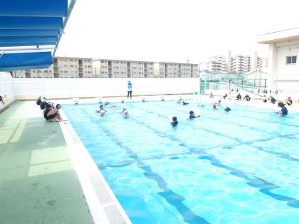 プールでは、ビート板を使って、うつ伏せ浮き、ラッコ浮きなどをし、身体が浮く感覚を楽しみました。最後にプールでじゃんけん列車。みんなでふわふわと歩きながら列車を作っていきました。