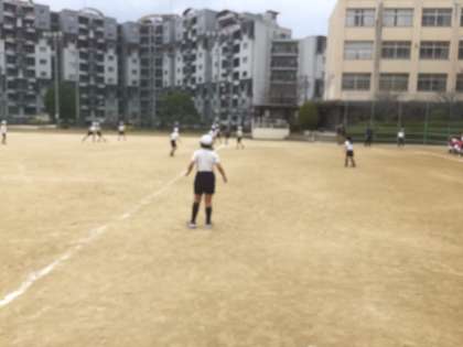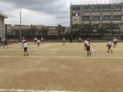 1組と2組に分かれて試合しました。攻撃する方も守備をする方も周りの力強い声援を武器にお互いが白熱した試合でどっちが勝つかドキドキしながら見ていました。