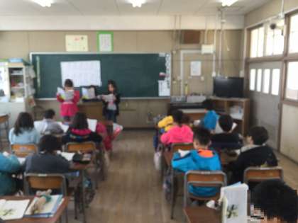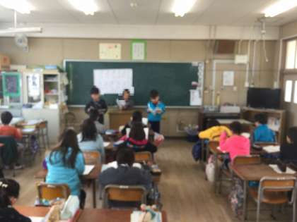 話の中に出てくる権八と藤六の役を決めて場面ごとに気持ちを込めながら、みんなの前で音読していきました。今日まで一生懸命練習してきました。緊張して少し噛んでしまった児童などがいましたが、最後まで練習してきた成果を発揮していたように思います。