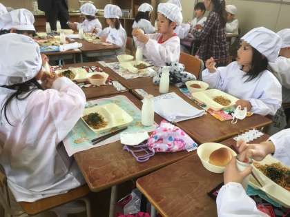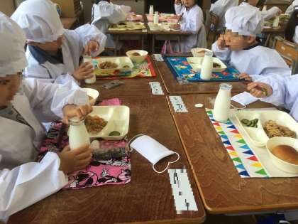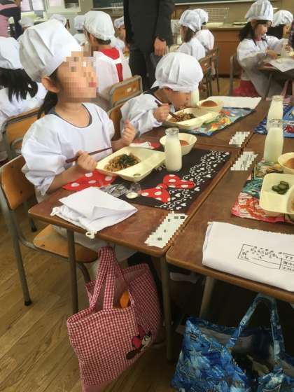 自分で給食を取りに行って、自分で配膳して自分で片づけにいくまでするなんて大変です。