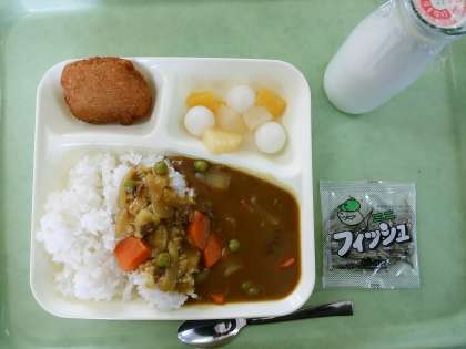 牛乳・カツカレーライス・フルーツ白玉・ミニフィッシュ