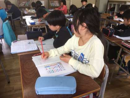 児童が新しい先生から学ぶ真剣なまなざしが美しいです。