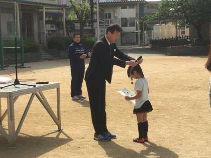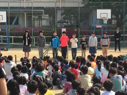 今朝の児童朝会は表彰と委員会の委員長の紹介がありました。