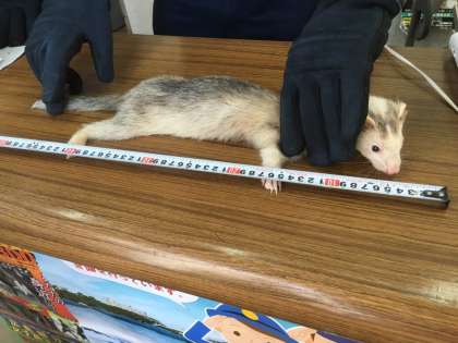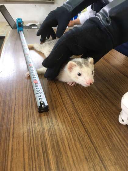 今日の13時45分ごろ、井高野第三住宅のあたりで子どもたちがフェレットらしき動物を見つけました。