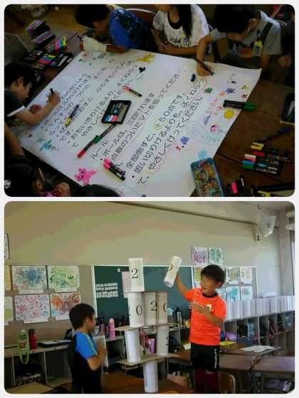 お店の看板を作ったり、飾りつけをしたり、景品を作ったりと、友だちと協力しながら頑張っていました。